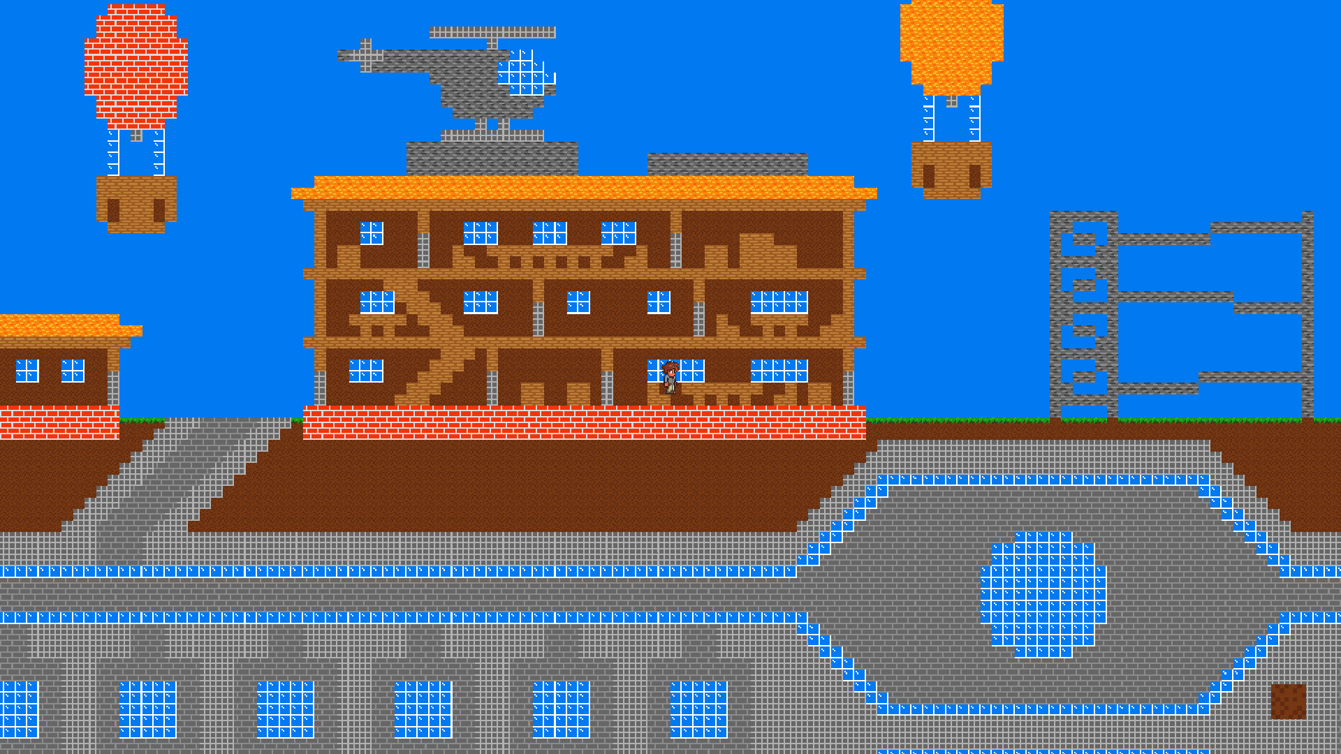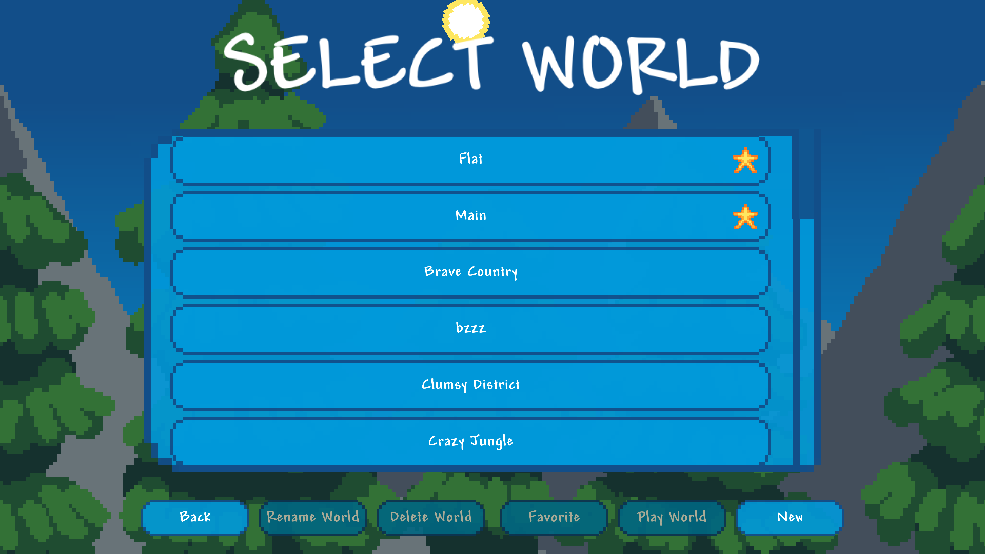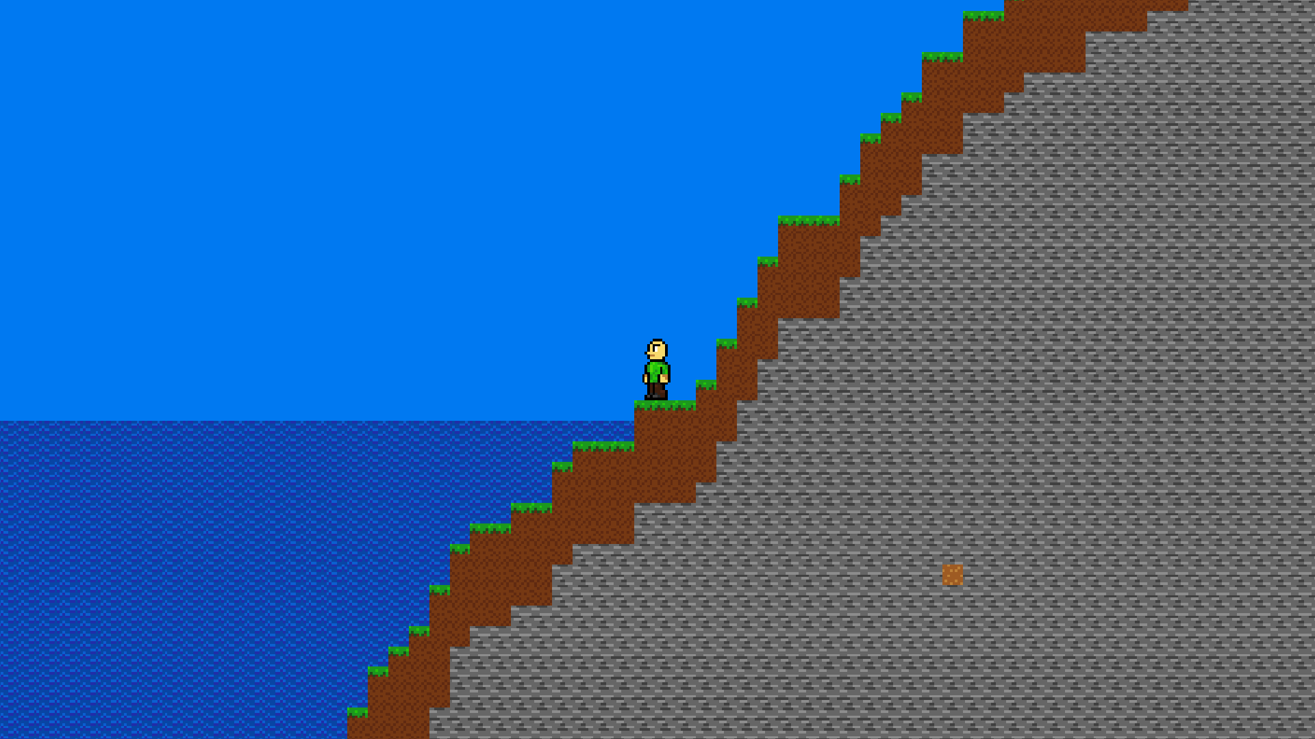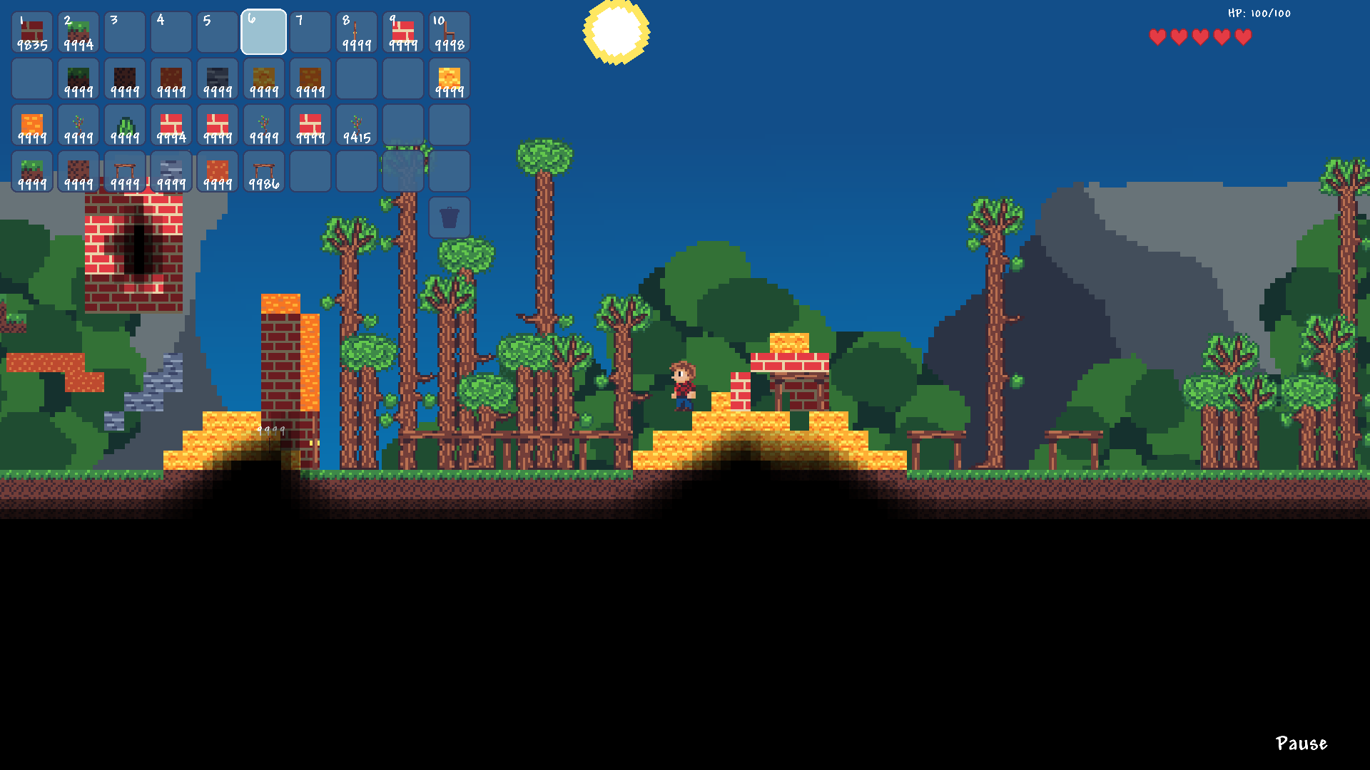 Sandbox-2D has features too many to name. But I'll still list some of the bigger ones. First, world generation featuring a variety of biomes based on temperature and humidity. Each world is different and there's also an option to generate a flat world. Second, player controller - the player can move around, interact with the environment and get hurt by different hazards. The player also has the ability to break and place blocks.